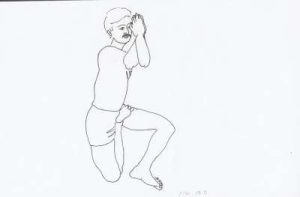 - Drop the hands in between the space of the thighs and calf near the knees.