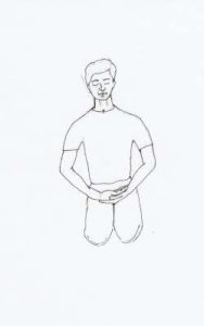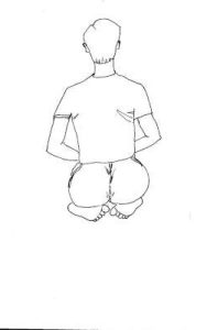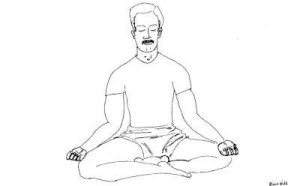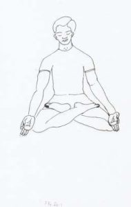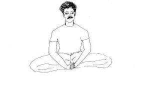 - Sit comfortably cross-legged as shown in the posture. The head and body should be straight and firm.