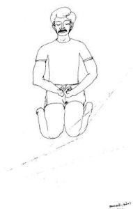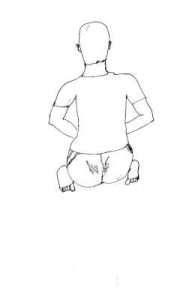 - Kneel on the floor with the knees apart. Place the head and chest slightly forward. Place the palms on the ground so that fingers point towards the feet. Elbows kept firmly pressed against navel point of the abdomen.