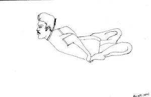 3. Exhale slowly and move the trunk and right arm towards left side the ear will touch the right upper arm. The left hand should be sided on left leg thigh.