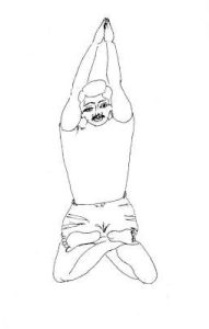 - lift both the arms above the head and stretch them firmly. Join both palms together.